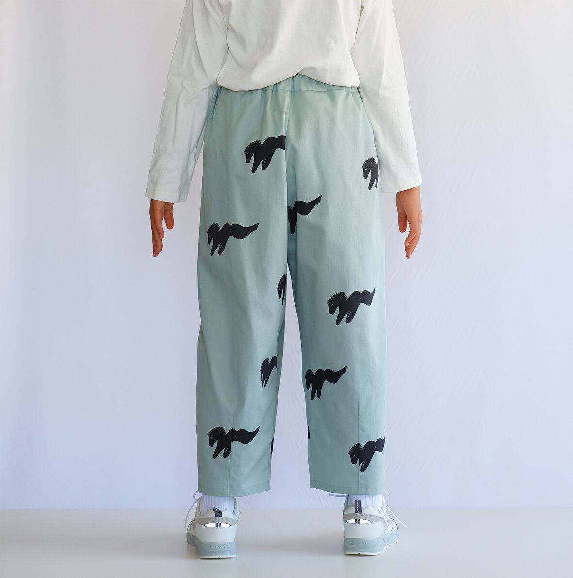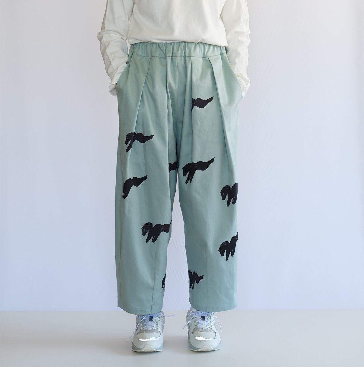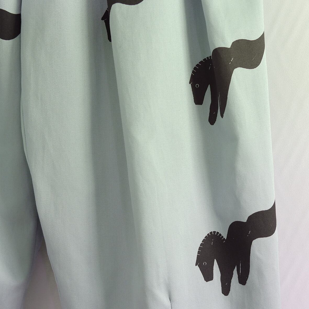 淡いペーパーミントグリーンのような生地にグレーの馬をプリントしています。